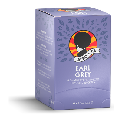 Der vollmundige Klassiker mit Bergamotte-Aroma. In der Afro-Tea-Variante ein harmonisch runder Mix aus sanfter Herbheit und samtiger Tiefe. Earl Grey Tee schmeckt köstlich mit einem Schuss Milch(alternative) oder pur.