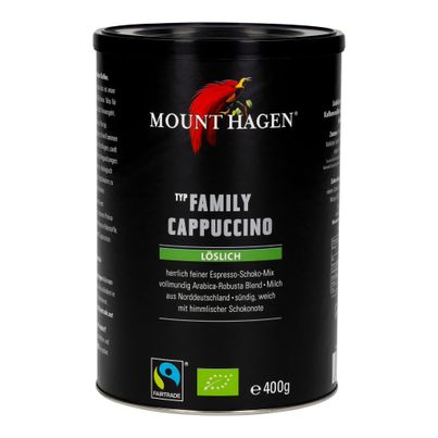 Der Cappuccino Family von Mount Hagen bringt den unverwechselbaren Geschmack von hochwertigem Kaffee direkt in deine Tasse. Mit einem ausgewogenen, aromatischen Kaffeegeschmack und einer feinen Milchnote wird jeder Schluck zu einem besonderen Moment. Die patentierte Herstellung des Cremers sorgt dafür, dass der Cappuccino nicht nur geschmacklich überzeugt, sondern auch eine angenehme, leicht süße Note bietet, die nicht aufdringlich wirkt.