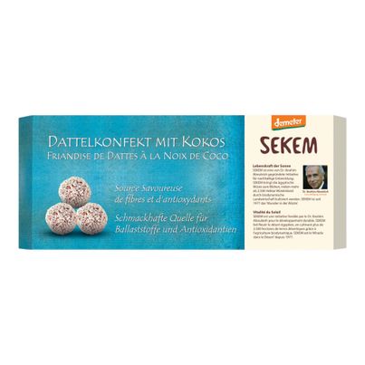 Das Dattelkonfekt Kokosnuss von Sekem vereint das Beste aus zwei Welten: die Süße der Datteln und die tropische Frische der Kokosnuss. Diese gesunde Nascherei ist ideal für jede Gelegenheit, sei es als Snack für zwischendurch, energiereiche Stärkung vor dem Sport oder als süßer Abschluss eines gelungenen Abendessens. Die sorgfältig ausgewählten, sonnenverwöhnten Datteln sind nicht nur köstlich, sondern auch reich an Nährstoffen. Sie liefern dir natürliche Süße und wertvolle Ballaststoffe, während die Kokosnuss deinem Snack eine exotische Note verleiht. Vegan und ohne Gentechnik hergestellt, ist dieses Konfekt die perfekte Wahl für alle, die Wert auf gesunde Ernährung legen. Zubereitungstipps gibt es viele: Verwandle dein Dattelkonfekt in eine köstliche Beigabe zu einem Käse- oder Obstteller. Du kannst es auch in kleine Stücke schneiden und in Joghurt oder Haferflocken geben, um deinem Frühstück eine süße Note zu verleihen. Ideal als süße Belohnung nach einem langen Arbeitstag oder als Snack für unterwegs – das Dattelkonfekt ist vielseitig einsetzbar. Darüber hinaus ist das Dattelkonfekt Kokosnuss auch eine großartige Option für gesellige Anlässe. Überrasche deine Freunde bei der nächsten Feier mit diesen gesunden Leckereien oder verwende sie als einzigartiges Geschenk, das garantiert gut ankommt. Mit diesem Dattelkonfekt bringst du ein Stück Wüste und tropisches Flair in deinen Alltag. Probiere es aus und erlebe die harmonische Verbindung von Dattelpalme und Kokospalme in jedem Bissen!