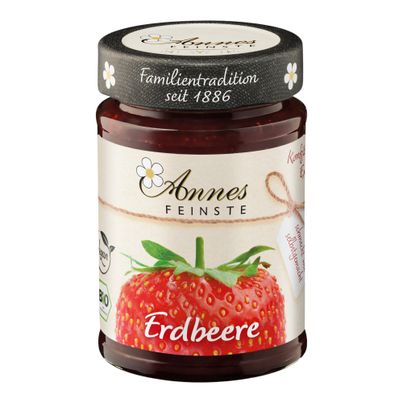 Annes Feinste Erdbeermarmelade ist eine wahre Delikatesse, die mit 55 % Fruchtgehalt aus biologisch angebauten Erdbeeren überzeugt. Diese Marmelade ist nicht nur vegan, sondern auch frei von Gentechnik – perfekt für alle, die Wert auf natürliche Zutaten legen. Der harmonische Geschmack der reifen Erdbeeren, kombiniert mit einem Hauch von Zitronensaftkonzentrat, bringt die Süße der Früchte auf den Punkt und sorgt für ein fruchtiges Erlebnis auf deinem Frühstückstisch. Um das volle Aroma dieser Marmelade zu entfalten, eignet sie sich hervorragend als Aufstrich auf frischem Brot oder Brötchen. Kombiniere sie mit einem cremigen Frischkäse für eine köstliche Frühstücksvariation oder füge sie deinem Joghurt oder Quark hinzu, um einen fruchtigen Snack zu kreieren. Auch beim Backen ist Annes Feinste Erdbeermarmelade ein echter Geheimtipp. Verwende sie als Füllung für Torten, Muffins oder Pancakes und überrasche deine Gäste mit einer fruchtigen Note. Die Verwendung ist denkbar einfach: Einfach einen Löffel der Marmelade auf dein Lieblingsgebäck geben oder als schmackhafte Zutat in deine Dessertkreationen integrieren. Sie verleiht jedem Gericht eine besondere Note und wird schnell zum Favoriten in deiner Küche. Dank der hochwertigen Bio-Zutaten kannst du dir sicher sein, dass du ein Produkt in den Händen hältst, das nicht nur gut schmeckt, sondern auch verantwortungsbewusst hergestellt wurde. Mit Annes Feinste Erdbeermarmelade holst du dir ein Stück Sommer ins Haus, das jeden Bissen zu einem Genuss macht. Lass dich von der Qualität und dem Geschmack überzeugen!