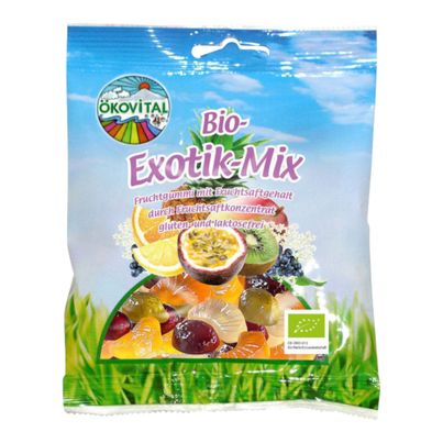 Lass dich von den fruchtigen Aromen des Exotik Mix mit Gelatine von Ökovital Rösner verführen. Diese exklusive Mischung aus fruchtigen Fruchtgummis bringt den Geschmack von sonnengereiften exotischen Früchten direkt zu dir. Mit einem hohen Anteil an natürlichen Zutaten wie Glukosesirup, Rübenzucker und einer sorgfältigen Auswahl an Fruchtsäften und -pürees zaubert jeder Bissen ein Stück Urlaub auf deine Zunge.