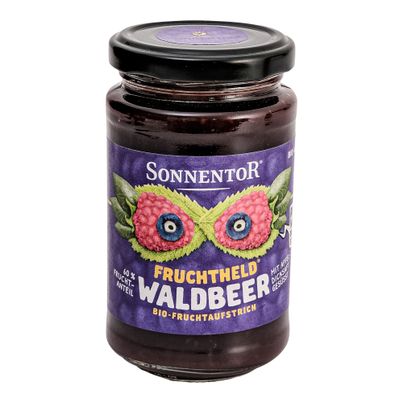 Der Fruchtheld Waldfrucht Aufstrich von Sonnentor vereint die Aromen von Heidelbeeren, Brombeeren und Himbeeren in einem köstlichen Geschmackserlebnis. Perfekt als Fruchtbelag für Kuchen oder zum Verfeinern von Kaiserschmarrn. Auch ideal auf deinem Frühstücksbrot, im Joghurt oder Müsli. Vegan, ohne Gentechnik und mit natürlichem Agavendicksaft süß. Hol dir den Wald auf dein Frühstück!