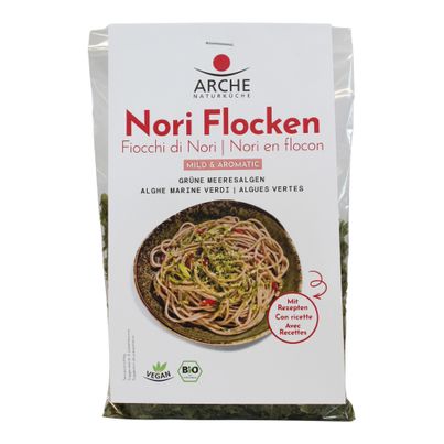 Nori Flocken von Arche sind die perfekte Würze für deine Gerichte. Diese veganen Grüne Meeresalgen (Ulva sp.) verleihen Nudel- und Getreidegerichten, Suppen und Salaten einen einzigartigen, aromatischen Geschmack. Ohne Gentechnik und voller natürlicher Aromen – ideal für kreative Küchenideen! Perfekt zum Streuen und Verfeinern.
