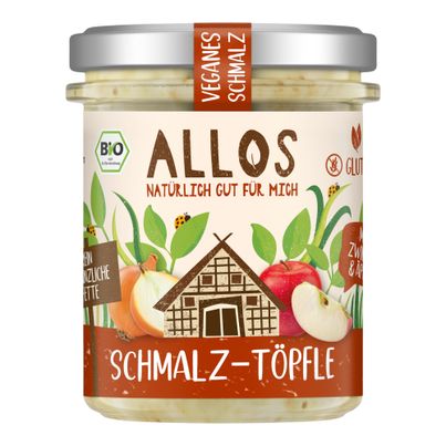 Allos Schmalz-Töpfle ist die perfekte pflanzliche Alternative zu klassischem Schmalz. Ideal für Brotaufstriche, Kochen oder Braten, vereint es ungehärtete Fette und aromatische Gewürze. Mit 79% pflanzlichen Fetten und wertvollem Sonnenblumenöl ist dieser vegane Genuss frei von Gentechnik. Verleihe deinen Gerichten einen herzhaften Geschmack!
