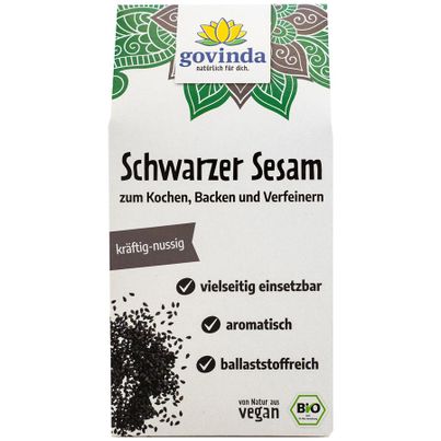 Schwarzer Sesam von GOVINDA ist die Urform des Sesams und überzeugt mit seinem kräftigen, würzigen Geschmack. Ideal zum Kochen, Backen und Verfeinern von Gerichten, bringt dieser vegane und gentechnikfreie Sesam besondere Aromen in deine Küche. Perfekt für eine gesunde und abwechslungsreiche Ernährung!