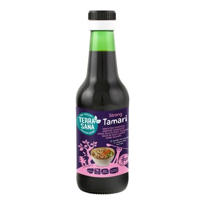Tamari von Terrasana bietet dir eine intensive, aromatische Sojasoße, die sich ideal zum Würzen von kräftigen Brühen und Gemüse eignet. Diese glutenfreie und gentechnikfreie Sauce, hergestellt aus hochwertigen Sojabohnen und Shochu, verleiht deinen Gerichten eine herzhafte Note. Perfekt für alle, die eine bekömmliche Alternative zu herkömmlicher Sojasoße suchen!