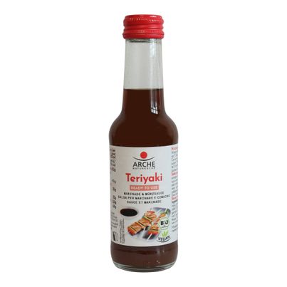 Die Teriyaki Sauce von Arche ist eine wahre Bereicherung für deine Küche. Mit ihrem ausgewogen-würzigen Geschmack verleiht sie Grill-, Wok- und Pfannengerichten das gewisse Etwas. Die Kombination aus hochwertiger Tamari Sojasauce, Reissirup und Mirin sorgt für eine harmonische Süße, die perfekt mit herzhaften Aromen harmoniert.