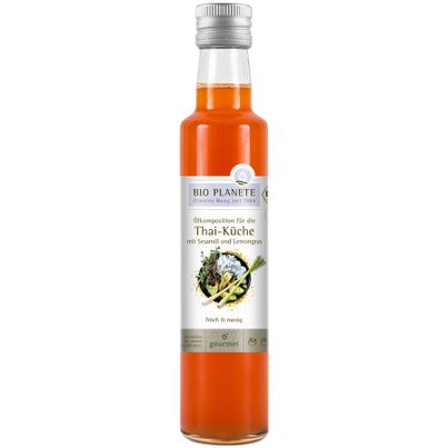 Das Thai-Küche Öl von BIO PLANETE bringt einen Hauch von Thailand in deine Küche. Mit einer einzigartigen Kombination aus ölsäurereichem Sonnenblumenöl, geröstetem Sesamöl und einer feinen Note von Shiitake-Pilzen, Zitronengras sowie weiteren aromatischen Extrakten, verspricht dieses vegane Öl ein unvergleichliches Geschmackserlebnis. Ideal für deine Bowls, Dressings oder zum Anbraten von Gemüse und Tofu – die vielseitigen Anwendungsmöglichkeiten sind nahezu unbegrenzt. Wenn du deinen Gerichten eine besondere Tiefe verleihen möchtest, nutze das Thai-Küche Öl als Basis für deine Dressings. Einfach mit etwas Sojasauce, Limettensaft und frischen Kräutern vermengen. So kreierst du im Handumdrehen ein asiatisch inspiriertes Dressing, das perfekt zu frischen Salaten oder als Dip für Frühlingsrollen passt. Für die Zubereitung von Bowls ist dieses Öl ebenfalls hervorragend geeignet. Brate dein Lieblingsgemüse, Tofu oder Tempeh in einer Pfanne mit dem Thai-Küche Öl an und kombiniere es mit Reis oder Quinoa. Die Umami-Note aus dem Shiitakepulver sorgt für einen herzhaften Geschmack, der deine Mahlzeiten auf ein neues Level hebt. Das Thai-Küche Öl ist nicht nur vegan und ohne Gentechnik, sondern auch reich an gesunden Fettsäuren. Das geröstete Sesamöl bringt nicht nur einen nussigen Geschmack mit, sondern ist auch bekannt für seine positiven Eigenschaften auf die Gesundheit. Mit einem EAN-Code von 4260355586932 ist dieses Produkt leicht zu finden und in verschiedenen Geschäften erhältlich. Verwandle deine Kochkunst und entdecke die Aromen Thailands direkt in deiner eigenen Küche – ganz einfach und schnell mit dem Thai-Küche Öl von BIO PLANETE.